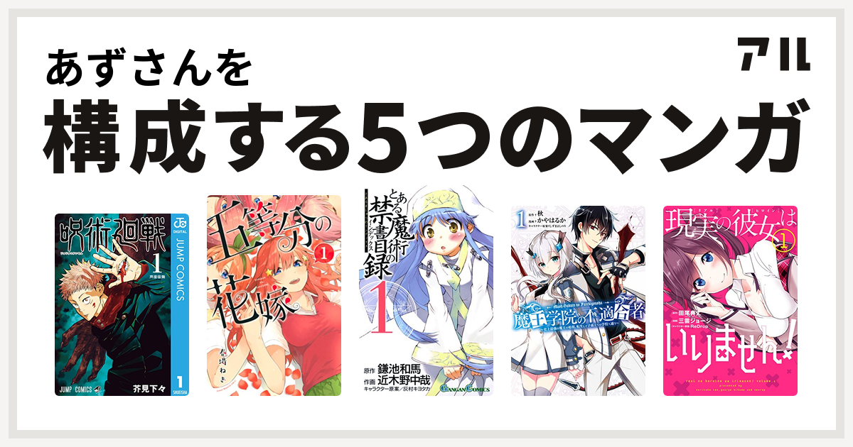 This artist bio is unreviewed. 這邊非官方公認粉絲團 訊息都是從五等分の花嫁或春場ねぎ的推特訊息轉載過來的 喜歡本作品的話點個讚支持一下 簡介 作品:日: 五等分の花嫁 / 五等分的花嫁 / 5 toubun no hanayome / the five wedded brides. The second season is scheduled to be broadcasted by tbs on january 7. It was announced during quintuplets birthday event held in japan on may 5, 2019. 週刊少年マガジン 2019年2・3号に掲載されている五等分の花嫁 66話のネタバレ、感想です。 前回 65話の記事はこちらです. 五等分の花嫁 中:五等分的新娘 作 see more of 五等分的新娘&五等分的花嫁 on facebook. 4,955 likes · 26 talking about this. 「五等分の花嫁∬ special event 2021 in 中野サンプラザ」オンライン配信情報追加! 五等分の花嫁 第1話 「もにょっとした気持ち」あらすじ家が貧乏な高校二年生・上杉風太郎のもとに、好条件の家庭教師のアルバイトの話が舞い込む。 海外の反応 【五等分の花嫁】 第1話 嫁戦争開幕! Thank you for watching.don't forget to subscribe to my channel.五等分の花嫁の可愛いシーンを集めました!見てくれてありがとうmade in aviutil編集ソフトaviutilおすすめのアニメre:ゼロから始める異世界生活彼女お借りしますこの素晴ら. Top 呪術廻戦 (jujutsu kaisen) scholars. 週刊少年マガジン 2019年6号に掲載されている五等分の花嫁 68話のネタバレ、感想です。 前回 67話の記事はこちらです。